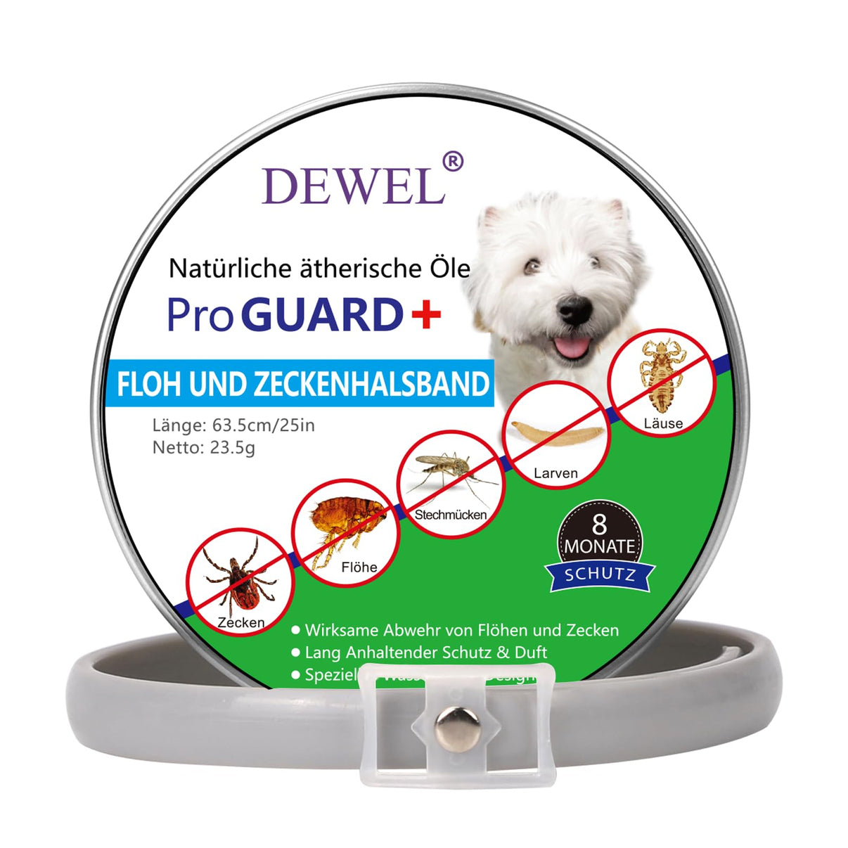 DEWEL 63,5cm Zeckenhalsband für Hunde, Verstellbar Floh-und Zecken Prävention Halsbänder Wasserdicht Flohhalsband gegen Ungeziefer