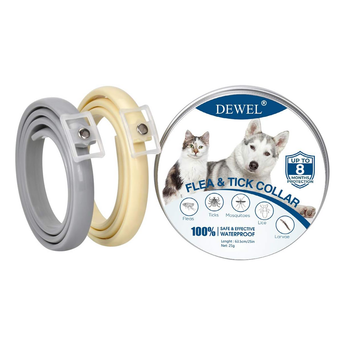 DEWEL Flea & Tick Collars for Dogs and Cats – 2-Pack, Adjustable 63.5 cm, 8 Months Protection